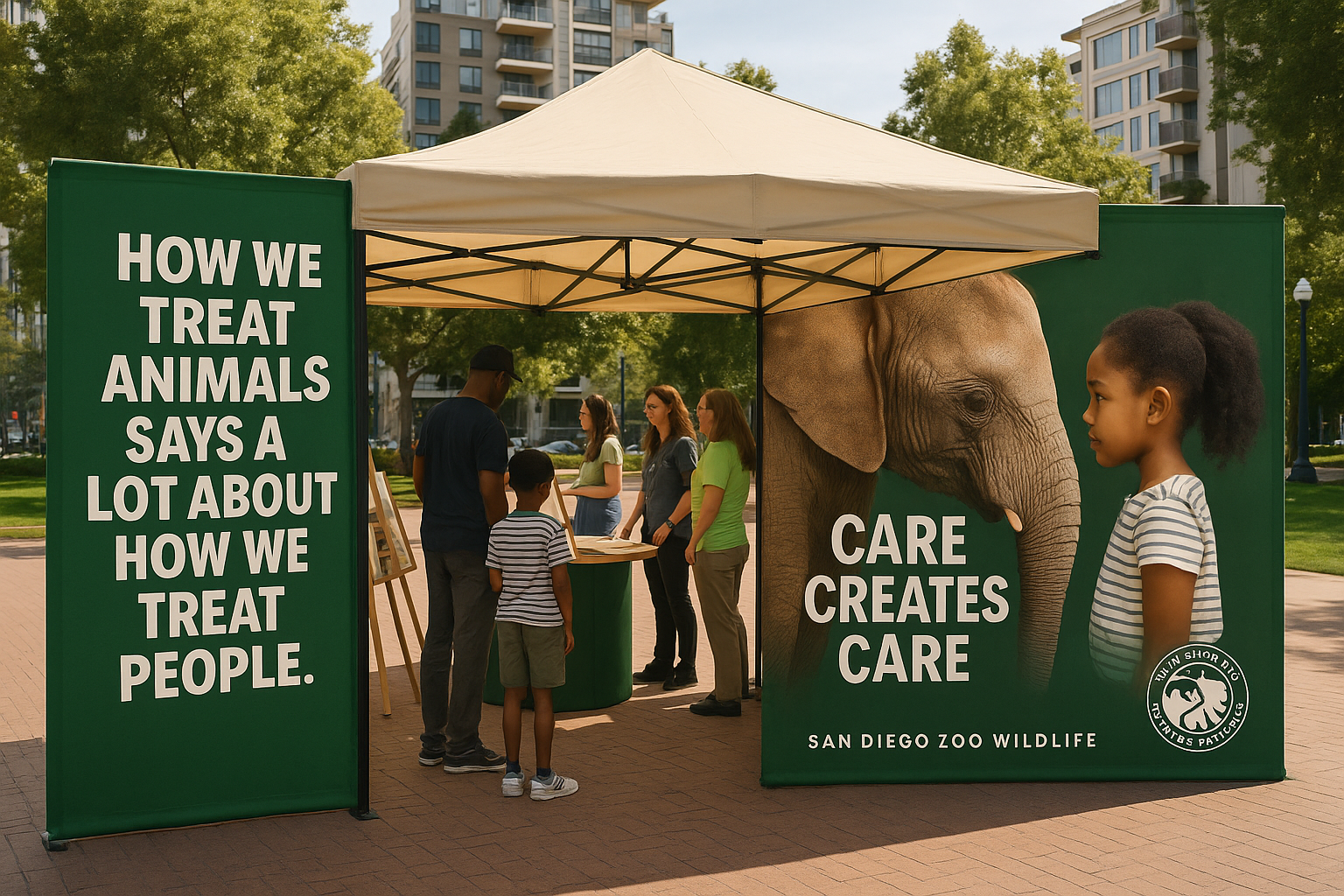 A Pop-Up interactive installation that invites visitors to assemble real wildlife care kits—nest boxes, feeders, and enrichment tools—that directly support animal wellbeing. As participants complete their kits, surrounding screens display the immediate impact, from the animals benefitting to the conservation programs supported.