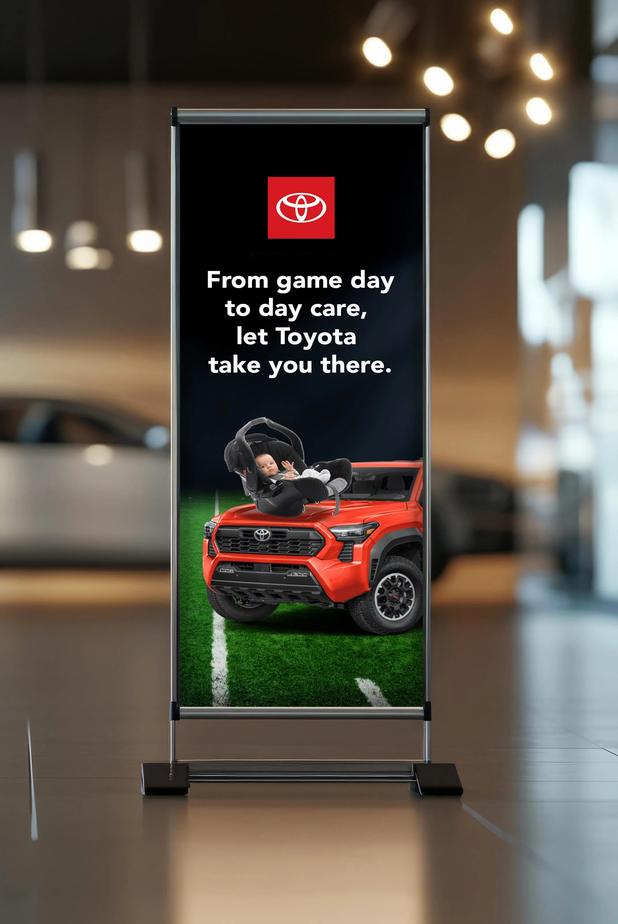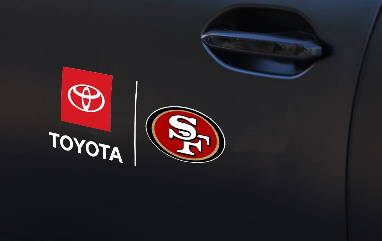 Brock Purdy extends beyond the stadium, woven into Toyota dealerships through eye-catching signage, branded decals, tailored offers, and exclusive dealership merch.
